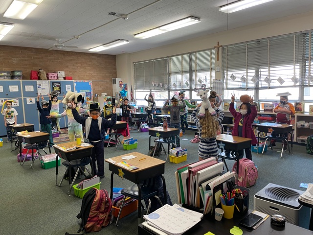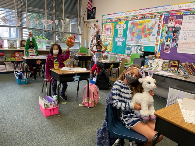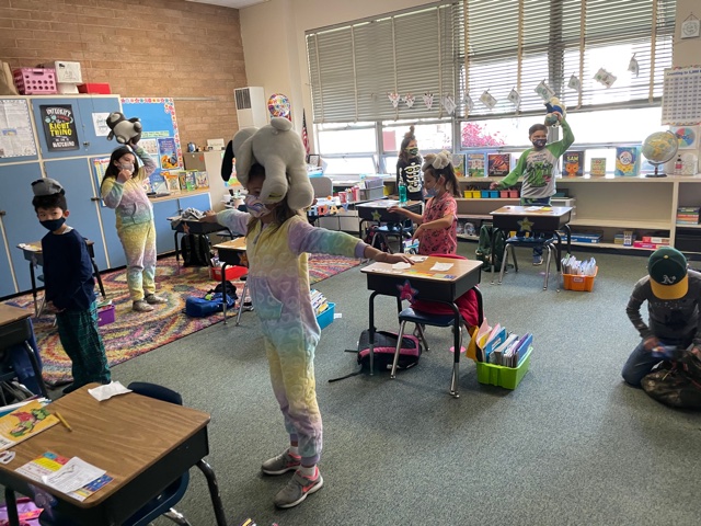 Spirit day was also a blast! Stuffies, pajamas, and video games, oh my! 🙂 Attached are a couple of pics, and here is a video of some spirit day exercise to get us ready for the Fun Run! 🙂